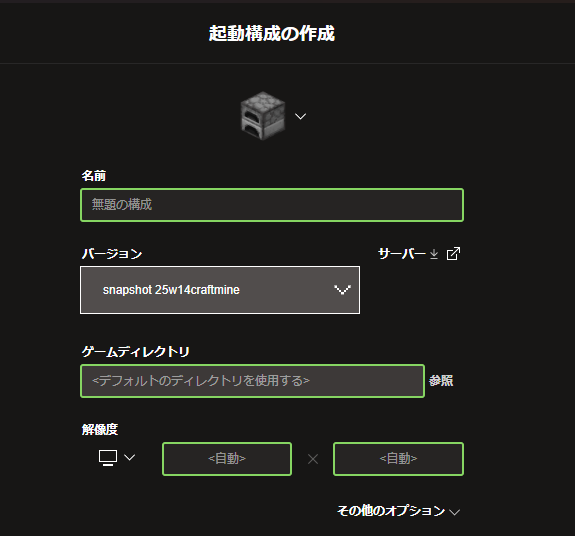 - 「起動構成」から「snapshot25w14CraftMine 」を選択して保存