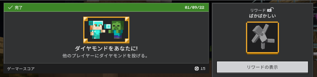 統合版では、実績はワールド単位ではなく、Microsoftアカウントに紐づいて管理され、実績によっては、エモートやアイテムなどの報酬を受け取ることができます