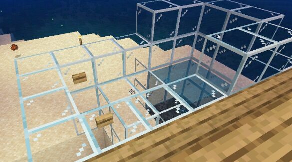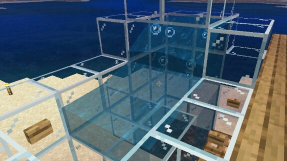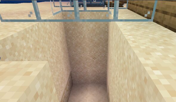 今回は砂浜に広めの場所をみつけて作成することにしました。砂浜以外で作成する場合は、地面のブロックを砂に置き換える必要があります。