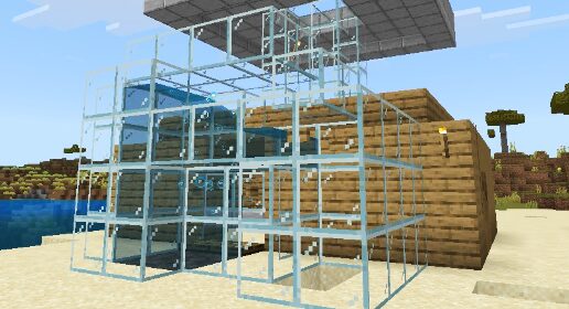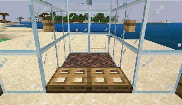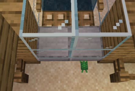 また、高さが2ブロックしかないと、カメや卵が増えたときにプレイヤーが身動きできなくなるため、天井の高さは3ブロック以上にしておくと安全です。
