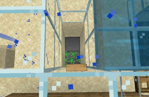そのうえで、もう1段上の層には、ガラスブロックで囲われた壁側の2マスだけに水源を置きます。