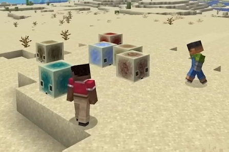サルファーキューブは、近くに落ちているアイテム(ブロック)を吸収し、その見た目に変化します。また、右クリックで与えることもできます。