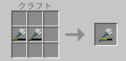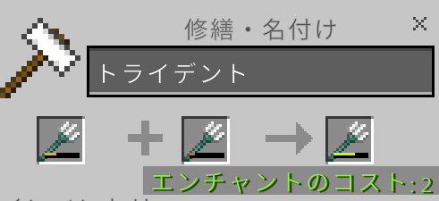 作業台やインベントリのクラフト欄に、消耗したトライデント2本を置いて、耐久値を1本にまとめられます。