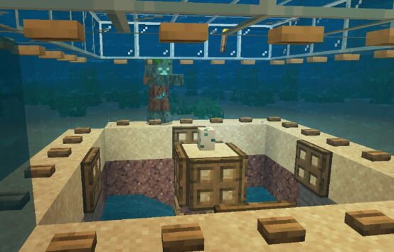 溺死ゾンビを倒してトライデントを入手するなら、陸地が近く、見通しの良い広い海底がおすすめです。水中呼吸のポーションや水中呼吸のエンチャントが付いたヘルメットがあると安心です。