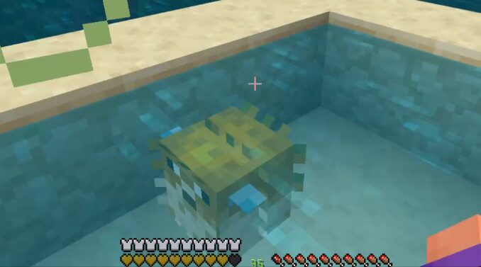 自分から攻撃しようとはしませんが、プレイヤーやウーパールーパー、水生でないモブが近づくと体を膨らませてダメージを与えます。