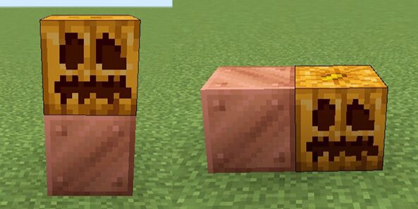銅ブロックの上(隣)にカボチャを設置すると即座にゴーレムが誕生します。