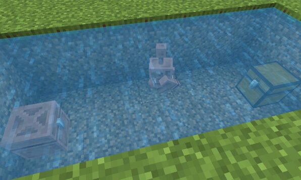 水中でも作業が可能ですが、水の外からは水中のチェストを認識できないようです。