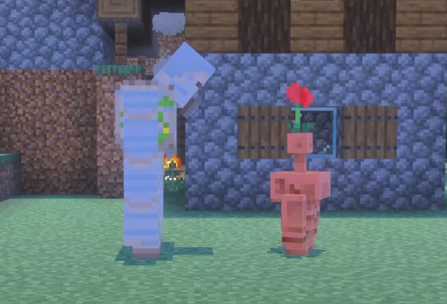 この仕草は、アイアンゴーレムが子供の村人に花を贈るというモーションを流用していると考えられ、銅ゴーレムにも同様の“花を贈る”振る舞いが組み込まれているようです。