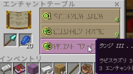 耐久力を高めるエンチャントやダメージ強化系は安定した選択肢ですが、槍の個性を最も引き出すのは槍専用エンチャントの「突進(ランジ)」です。