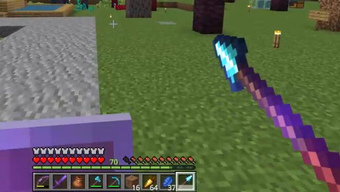 サバイバルモードでは、攻撃範囲は2〜4.5ブロックとされており、剣よりも一歩離れた距離から敵を攻撃できます。クリエイティブモードでは最大で約6.5ブロックまで攻撃が届くきます。