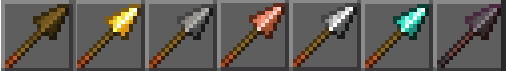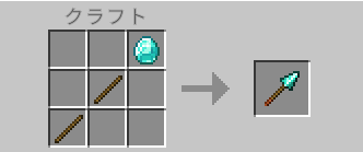 棒2個と特定の素材1個を斜めに配置することでクラフトできます。ただし、ネザライトの槍はクラフトできません。鍛冶台でダイヤモンドの槍とネザライト強化の鍛冶型、ネザイライトインゴットを使用して強化します。